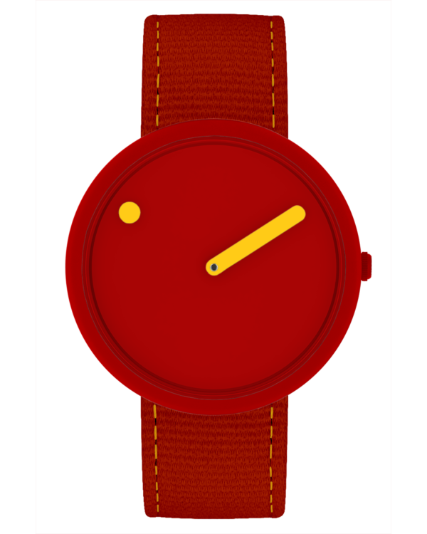 PICTO polshorloge met draaibare wijzerplaat en Sunny Red band van gerecycled kunststof. De wijzerplaat van dit horloge is 40 mm.
