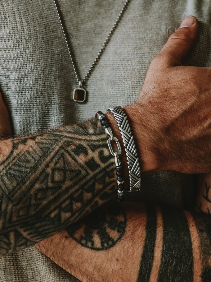 De iets grotere versie van onze klassieke Aodh -armband, met een prominentere uitstraling, maar net zo elegant en verfijnd voor dagelijks gebruik. Het gevlochten ontwerp voelt licht aan, zit comfortabel en combineert perfect met andere armbanden voor een stoere stapel. Een armband die je elke dag kunt dragen, zowel los als in combinatie met andere armbanden.