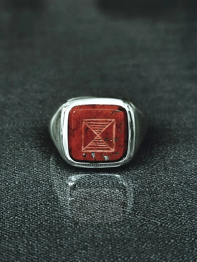 Een verfijnde en stijlvolle ring met een diepgekleurde jaspis edelsteen, versierd met het West-Afrikaanse Adinkra-symbool voor standvastigheid. Jaspis staat zelf voor moed en vastberadenheid. Dankzij de elegante kleur is de Dodzi-ring gemakkelijk te combineren met andere sieraden.